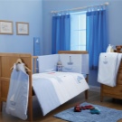 Трябва внимателно да обмислите избора на тъкани: препоръчително е те да са прахоустойчиви, тъй като детето най-вероятно ще докосне завесите. Също така, ако е възможно, трябва да изберете естествени материи – лен, юта, памук. Морската тема предполага използването на груби текстурирани тъкани, така че тук можете да комбинирате екологичността на материалите и естетиката на стаята..