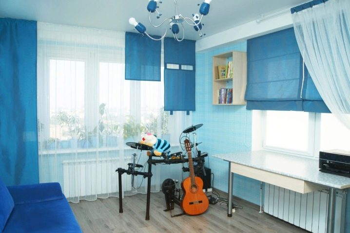 Сините завеси също ще се впишат добре в тийнейджърската стая. Този романтичен цвят става избор на деликатни лица. Материалите за изпълнение на правилните завеси в този тон трябва да бъдат леки и ефирни материи, например памук или лен..