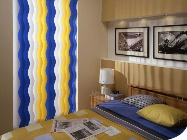 Предимствата на щорите са тяхната евтина цена, отлична защита от слънчева светлина и наличието на чист въздух в помещението. В съвременния дизайн младежките цветове на щорите стават все по -популярни. Тук можете да намерите богати монофонични опции, както и многоцветни вертикални щори, визуално добавящи височина към стаята..