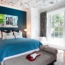 - оригинално решение ще бъде комбинация от плътни завеси с материала и тона на мебелната тапицерия, например с покривало за спалнята.