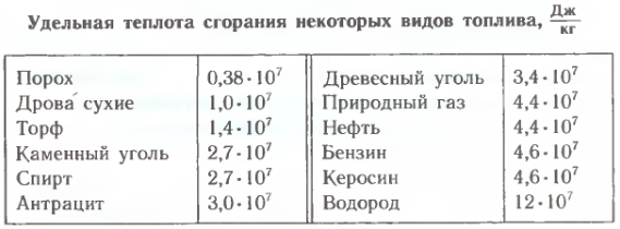 الحرارة النوعية للاحتراق q هي كمية مادية تساوي كمية الحرارة المنبعثة أثناء الاحتراق الكامل لـ 1 كجم من الوقود.