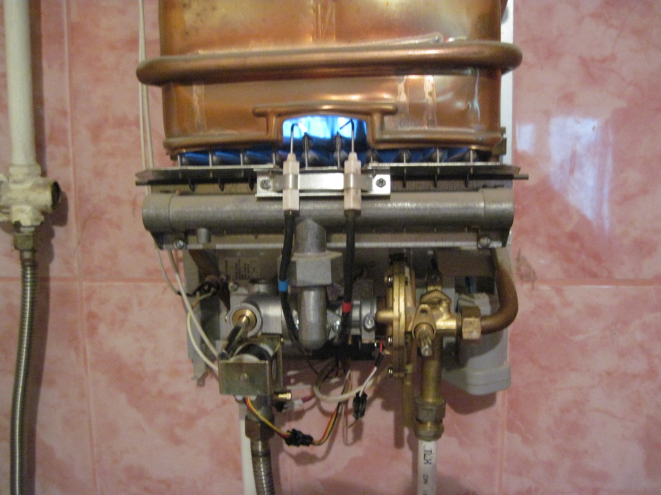 Stĺpec sa nemusí vznietiť, pretože výmenník tepla je upchatý. Ak sa počas prevádzky voda prehrieva, môže sa vo vnútri objaviť vodný kameň, ktorý znižuje prietok vody. Ak je tlak vody na vstupe do kolóny normálny a na výstupe nie je žiadne zablokovanie, potom je pravdepodobne problém vo výmenníku tepla.