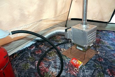 Existujú aj nevýhody. Výmenník tepla je možné umiestniť iba do stanu, ktorý má otvor pre výstup komína. Mimochodom, niektorí vynaliezaví rybári vylepšujú (podľa ich názoru) skladovacie zariadenia a vynášajú komín zospodu – medzi podlahu stanu a jeho stenu. Na správnu funkciu zariadenia je navyše potrebné napájanie, čo znamená, že musíte z auta vybrať batériu alebo nosiť so sebou iný zdroj energie..