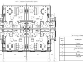 Особеностите на четирите къщи включват кръстообразното разделяне на къщата в плана на отделни обекти. Стените в централната част са носещи, удебелени, осигурени с повишено ниво на шумоизолация.