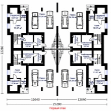 Стилна четворна къща с таванско помещение и огледално разположение на SIP панели. Общата площ на всеки апартамент достига 122 м2.
