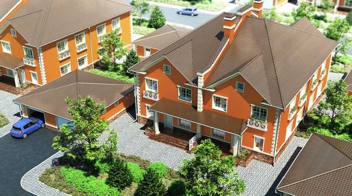 Разликата между четворка и градска къща също си заслужава да бъде разгледана.. В първия случай отделните блокове образуват квадрат с 4 отделни входа. Градската къща има линейно оформление, съседните секции са в контакт само със страничните стени. В този случай всички входове се показват от едната страна.
