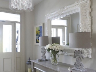 Ако прозорците са обърнати на север, а стаята е здрач, трябва да поставите няколко лампи близо до огледалото. Светлината им, отразена, ще запълни пространството наоколо с меки отблясъци и ще помогне да се справите със здрача в апартамента..