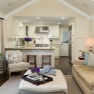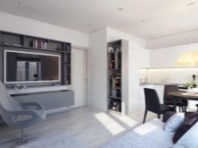 - антре-кухня-трапезария. За да комбинирате три зони в една стая, е необходимо да разрушите преградите или да оборудвате сводеста врата. На разделителната линия между стаята и кухнята или в стаята има трапезария с мек диван или бар плот с високи столове.