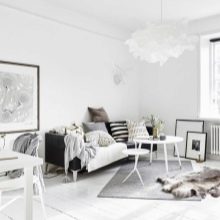- Скандинавски стилът съчетава чертите на минимализма и играта на цветове. В този стил светлите нюанси също преобладават в интериора, но се допуска допълнителен декор под формата на картини, декоративни предмети и цветя. В същото време основният акцент е върху функционалността и комфорта..