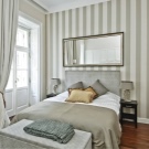- тапетът остава най -често срещаният вариант. Можете да използвате скъпи платна, екранирани с коприна. По -добре е да се даде предпочитание на тапети с малки вертикални шарки и шарки. Те ще помогнат за постигане на ефект на висок таван..