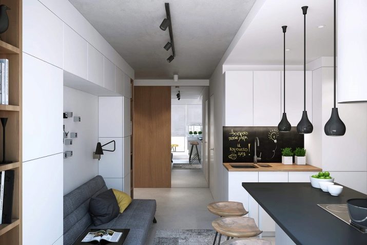И двете стаи и кухнята трябва да отговарят на един и същ стил, да се съхраняват в една и съща цветова схема и да съответстват на периода от време. Комбинацията от различни стилове в малък “хрушчов” ще изглежда неподходяща и дори нелепа. Ценителите на свободата и отвореното пространство трябва да обърнат внимание на модерните стилове на декорация на апартаменти, те са идеални за студиа. В същото време акцентът е върху функционалността и свободата на пространството..