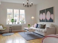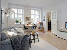 Малък апартамент трябва да има минимум декор. Най -добре е да оставите отворените рафтове наполовина празни, тъй като това ще създаде по -лека атмосфера. Не трябва да използвате много малък декор. Той ще раздели стаята на парчета и ще създаде усещане за безпорядък и бъркотия..
