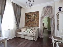 - Стил Прованс дойде при нас от южната провинция на Франция. Отличителни черти – флористични мотиви, пастелни и естествени нюанси: бежово, тюркоазено, маслинено, синьо, зелено, розово, лавандулово, жълто и други подобни, докато интериорът не трябва да е ярък и наситен. Основният светъл цвят се разрежда с естествена естествена палитра. Мебелите могат да бъдат състарени, обелени бои или нарязано дърво. Можете да допълвате интериора с уникални предмети: ракла или стар скрин. Завесите и завесите трябва да са леки и полупрозрачни, разрешена е средната дължина до перваза на прозореца. Голям брой волани, дантели, покривки и керамични фигурки се приветстват като декор..