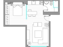 На малък площад наистина искам да оборудвам красив и удобен апартамент за цял живот. Съвременните дизайнерски идеи ви позволяват да създадете уютен интериор, така че дизайнерските проекти за апартаменти до 43 кв. m все още е популярен. Всички типични двустайни “хрушчовки” имат подобно оформление и площ: