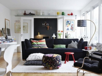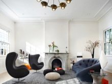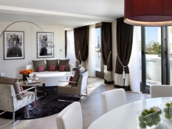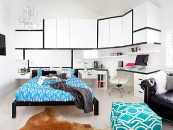 За да направите стаята по -просторна, трябва да използвате изключително светли цветове., тъй като тъмните нюанси визуално стесняват пространството. Стаята в черно -бял дизайн изглежда много стилна и модерна. Тази опция не е загубила своята актуалност в продължение на много години и се счита за своеобразна тенденция в дизайна..