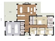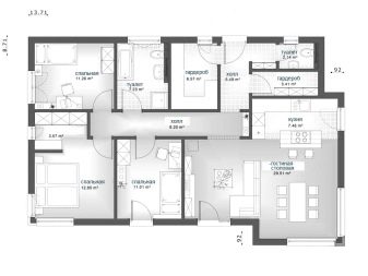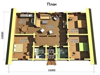 Стандартна едноетажна къща също има място за всички членове на семейството и гости.. Спалните на приземния етаж могат да бъдат подредени по няколко основни начина.