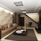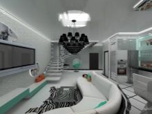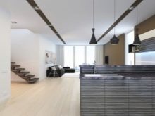 Ето някои конкретни примери за дизайна на апартамент на две нива. Така че, тъй като таваните често са доста високи в двуетажни къщи, по-добре е да инсталирате опънати тавани на закрито..