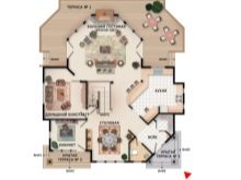 Помислете за една от най -добрите опции за оформление. На приземния етаж можете да направите антре, да организирате голяма кухня, която е отделена от трапезарията с бар плот, в центъра трябва да има хол и баня за посетители. Но на втория етаж вече има лично пространство за членовете на семейството, ако е възможно, отделни бани, оборудвани съблекални във всяка стая.