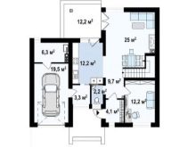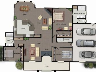 Типичен американски дом проект включва гараж, неговата площ директно зависи от броя на колите в семейството. Може да се прикрепи към къщата, като се направи отделен вход директно от кухнята, или да се постави отделно близо до жилището..