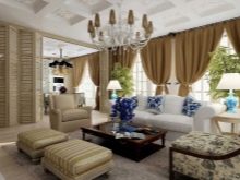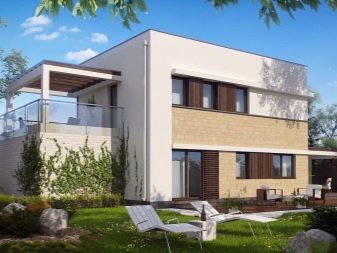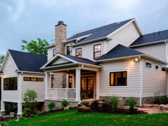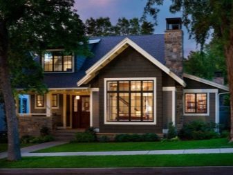 Що се отнася до екстериора, в него преобладават прави линии, а светлите пастелни цветове са основните в интериора. За декорация е по -добре да използвате естествени материали или винилов сайдинг..