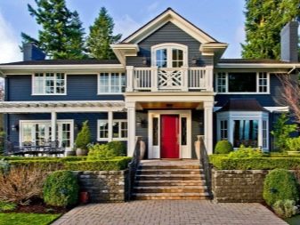 Къщите в Америка често са оборудвани с огромни прозорци, често имат сводеста форма и има капаци, но това не е основното правило. Детайл от проекта ще бъде таванско помещение, оборудвано с балкон и панорамна стъклена стена.. Домовете в американски стил трябва да имат множество изходи, единият от които води към задния двор..