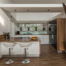 - Висока технология Друга модерна тенденция. Ако този стил е избран, тогава жилището трябва да бъде оборудвано с помощта на съвременни материали (пластмаса, метал, стъкло) и технически устройства (джаджи, съвременни домакински уреди и т.н.). Класиката противоречи на хай-тек, така че е по-добре да не добавяте подробности от тази посока към съвременните ансамбли..