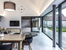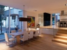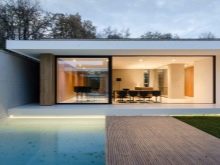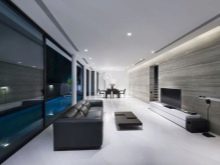 - Стилът също принадлежи към категорията модерни минимализъм. Едноетажно жилище вътре може да бъде подредено по подобен начин. Обикновено в минималистичния интериор няма задръствания – използват се само полезни, необходими и функционални части. Уместно е едноцветно покритие в успокояващи тонове. Можете да добавите ярки акценти, но с умереност.