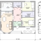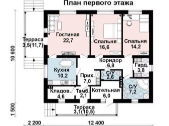 Има огромен брой проекти на типични къщи с малко котелно помещение. Например, това може да бъде висококачествена едноетажна сграда от газобетон с размери 12,4×10,6 m и обща площ 110,3 кв. м.