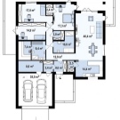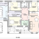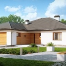 Има не по-малко интересни и ергономични проекти на едноетажни жилища с гараж или допълнителен навес.. Нека се запознаем с една от схемите на такава структура.