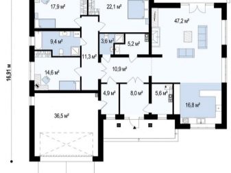 - гараж – 36,5 м²;