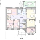 - Проектът предвижда не само наличието на тераса, но и котелно помещение и кухня-трапезария.