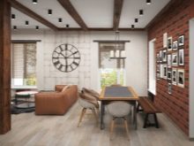 - В големи и просторни сгради груб тавански стил изглежда страхотно таванско помещение. Тази посока е подходяща дори за двустайна къща, ако има достатъчно квадрат. Таванското помещение се характеризира с наличието на тъмни довършителни материали, тухлена зидария (естествена или имитация), мебели с груби дървени детайли.