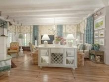 - Стилът на френската провинция е много популярен – Прованс. Ако тази посока е избрана за вътрешното подреждане на едноетажно жилище, тогава собствениците трябва да закупят висококачествени мебели от естествено дърво, поддържани в светли цветове..