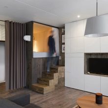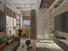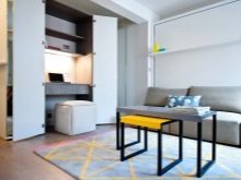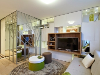 Така че дефицитът на пространство по никакъв начин не влияе върху условията на живот, е необходимо правилно да се разработи дизайна и да се раздели апартамента на различни сектори, като същевременно се поддържа комфортът и красотата на помещенията..