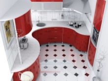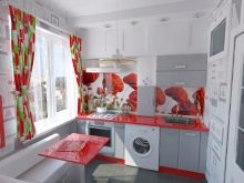 Декорирането на кухнята най -често се извършва с керамични плочки. Препоръчително е да изберете материал с лъскава повърхност. Комбинацията от червено и бяло изглежда красива. В допълнение, такава цветова схема хармонично ще поддържа цялостния стил на апартамента. В случай, че кухнята има балкон, тя трябва да бъде остъклена и да бъде продължение на хола.