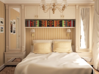 Не трябва да забравяме и използването на гардероб. Такива мебели ще служат като добро място за съхранение на неща, а огледалата на вратите ще увеличат пространството. За да запълни спалнята с някакъв романтизъм, проста обстановка може да бъде разредена с наличието на червени завеси..