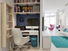 Добър вариант в тази ситуация ще бъде зонирането под формата на декорация на стени, работната зона трябва да бъде декорирана по такъв начин, че да действа като отделно място в стаята, но в същото време да не се откроява твърде рязко на фона на общ произход.