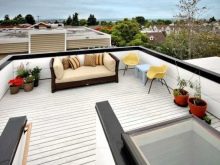 На верандата си струва да поставите компактни сгъваеми столове и маси за лятна релаксация..