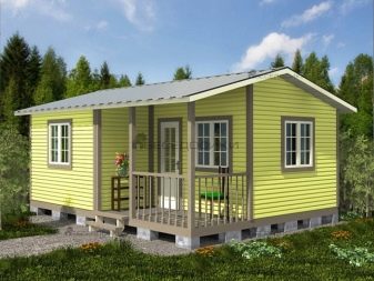 Най -често се произвеждат крайградски конструкции с размери 4 на 6 метра от дървена основа. Те могат да включват малка кухня-трапезария, компактна спалня и баня.
