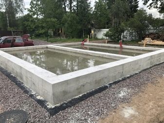 Ако подземните води са разположени на дълбочина половин метър, тогава лентовата основа не може да бъде инсталирана също поради необходимостта от оформяне на дренажен механизъм. Тогава би било по -добре да използвате опора от незаровена стоманобетонна плоча..
