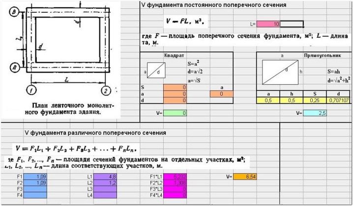 Сега нека поговорим как да изчислим размерите на основата и да изчислим нейните размери. И в различни случаи изчисленията ще се правят по различни начини. Например, за да изчислите обема на лентовата основа, трябва да знаете такива параметри като:
