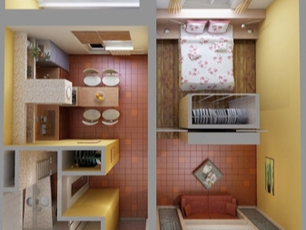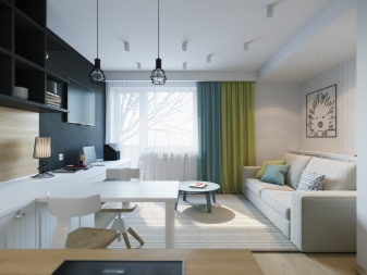 Жителите на малки апартаменти са свикнали с факта, че всеки сантиметър полезна площ трябва да се използва, така че да няма липса на свободно пространство в стаята. Едностаен преустроен апартамент с хармоничен дизайн, изчислен до най-малкия детайл, може лесно да се конкурира с просторни апартаменти.