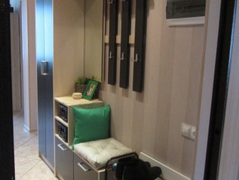 Важно изискване за коридора в едностаен апартамент е разположението на килера с дрехи. Ако вратите на съблекалнята са облицовани със стъкло, стаята ще изглежда по -просторна. Огледална входна врата не само ще създаде илюзията за дълъг коридор, но и ще завърши външния вид. Ако банята не позволява инсталирането на пералня, рационално го извадете и вградете в килера.