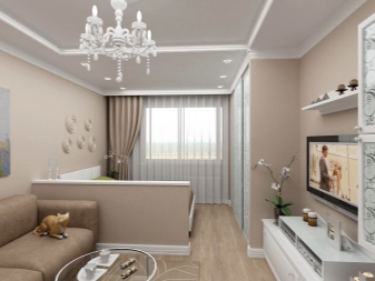 Трябва да се помни, че мебелите играят важна роля в зонирането на пространството. Следователно инсталирането на бар-преграда ще помогне да се отдели кухнята от хола или спалнята. Гардеробите с огледални фронтове визуално ще направят стаята по -широка. Свободните повърхности трябва да се използват максимално, но не трябва да се допуска затрупване.