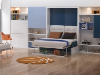 Можете да комбинирате работно и спално място: инсталирайте подиум. В него се помещава работна зона, а под него е легло, което се изплъзва навън с помощта на колела. Такова решение днес се счита за нестандартно и по-скоро креативно. По -традиционна версия на подиума е плъзгащи и повдигащи плотове. В стая с ниша няма нужда да монтирате рафтове: рафтовете могат да се поставят в отвора на стената.