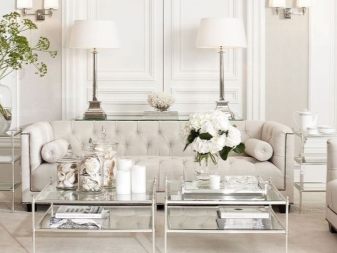 Стените могат да бъдат тапицирани с плат или декоративна мазилка. Мебелните елементи трябва да са масивни, но елегантни. Античните мебели ще добавят шик към интериора. Класическите плавни форми са лицето на стила. Диваните са тапицирани с кадифе, памук в благородни цветове или естествена коприна. Масивните полилеи от ковано желязо или кристал са важен детайл, светлите акценти трябва да бъдат поставени правилно. Благодарение на долната светлина можете да създадете допълнителен уют.