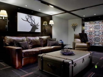 В този бизнес интериор почти няма изящни гънки или заоблени ъгли. В комбинация с домакински уреди, квадратни и правоъгълни предмети добавят агресия към интериора. Не е обичайно да се инсталират украсени полилеи на тавани., предпочитание се дава на подови лампи или аплици. Такива устройства трябва да осигуряват достатъчно осветление, без да се открояват от общия фон..