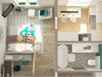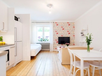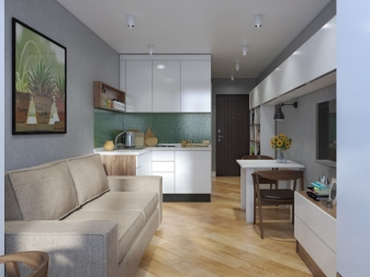 Жителите на малки апартаменти са свикнали с факта, че всеки сантиметър полезна площ трябва да се използва, така че да няма липса на свободно пространство в стаята. Едностаен преустроен апартамент с хармоничен дизайн, изчислен до най-малкия детайл, може лесно да се конкурира с просторни апартаменти.