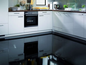 Усещането за въздух в апартамента се създава от лъскави бели повърхности. Но не се ограничавайте само с този цвят. Подходящи са и нюанси на слонова кост, млечни или кремави. Отразяващ тъмен под ще помогне значително да задълбочи стаята и да постави светли фасади. Можете да си позволите тъмни стени без визуално намаляване на пространството, ако използвате светли мебели в интериора. Цветът на стените с тази опция трябва да бъде дълбоко матиран.
