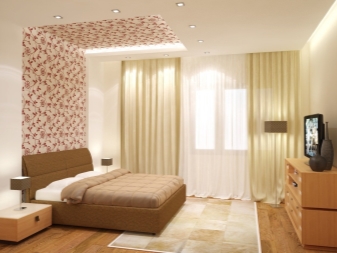 Можете да допълвате такъв интериор със скрити лампи, вградени в тавана.. Цветът на завесите трябва да бъде избран според цвета на стените., така че интериорът да изглежда напълно хармонично.